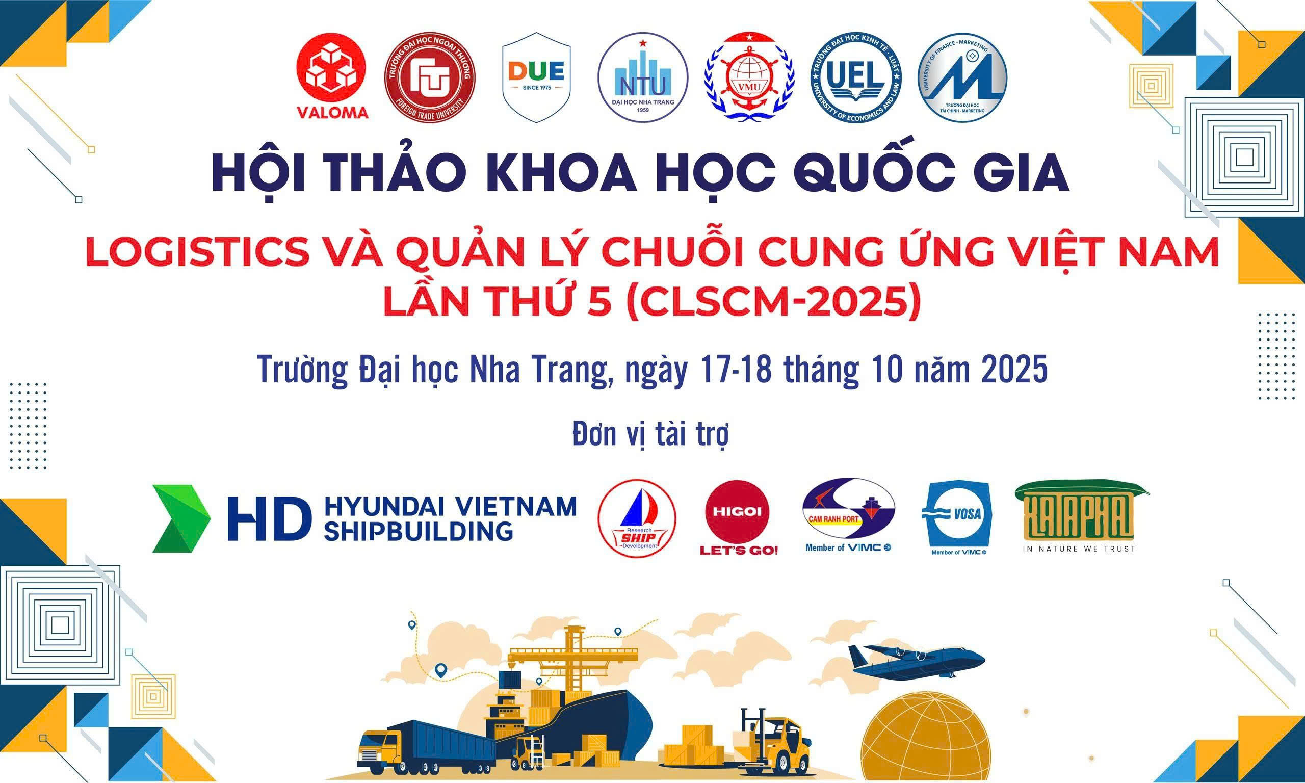 Năm 2025, Trường Đại học Nha Trang, cùng với Hiệp hội Phát triển nhân lực Logistics Việt Nam (VALOMA), Trường Đại học Ngoại thương, Trường Đại học Kinh tế (Đại học Đà Nẵng), Trường Đại học Tài chính - Marketing, Trường Đại học Kinh tế - Luật (Đại học Quốc Gia TP. Hồ Chí Minh), Trường Đại học Hàng hải Việt Nam phối hợp đồng tổ chức Hội thảo khoa học quốc gia về Logistics và Quản lý chuỗi cung ứng Việt Nam lần thứ 5 (CLSCM-2025) với chủ đề “Kỷ nguyên mới của Logistics và Quản lý chuỗi cung ứng: Công nghệ, Tự động hóa và Tăng trưởng Xanh.”